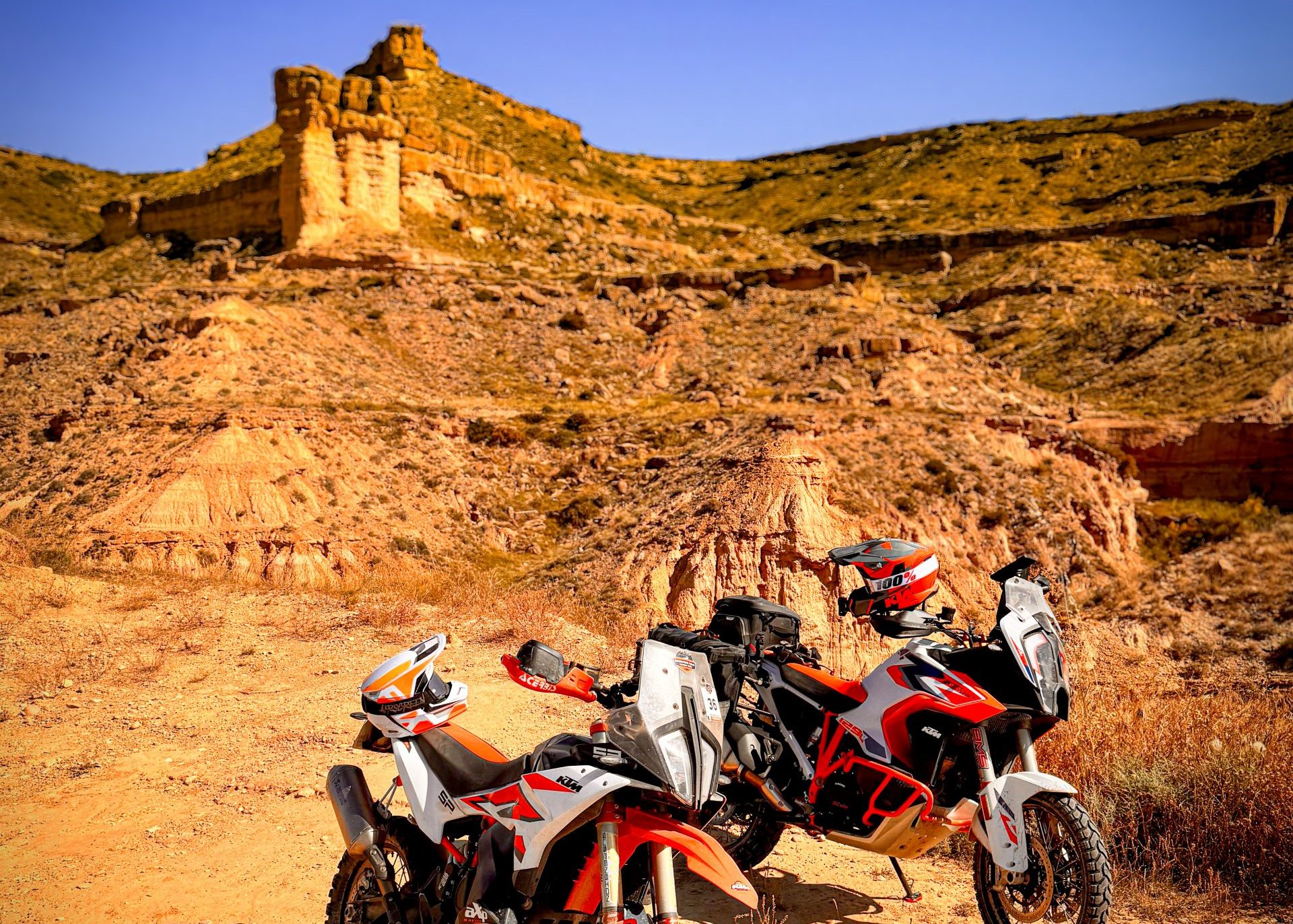 Nous sommes fiers de vous proposer une randonnée moto exceptionnelle au départ de Huesca, en Espagne : 5 jours de trail à la découverte du désert de Los Monegros, l’un des joyaux naturels les plus méconnus d’Europe.